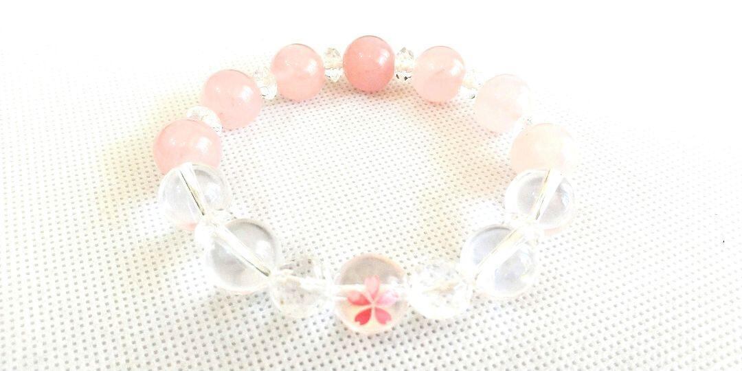 桜彫り水晶とローズクォーツ・水晶の天然石ブレスレットです!