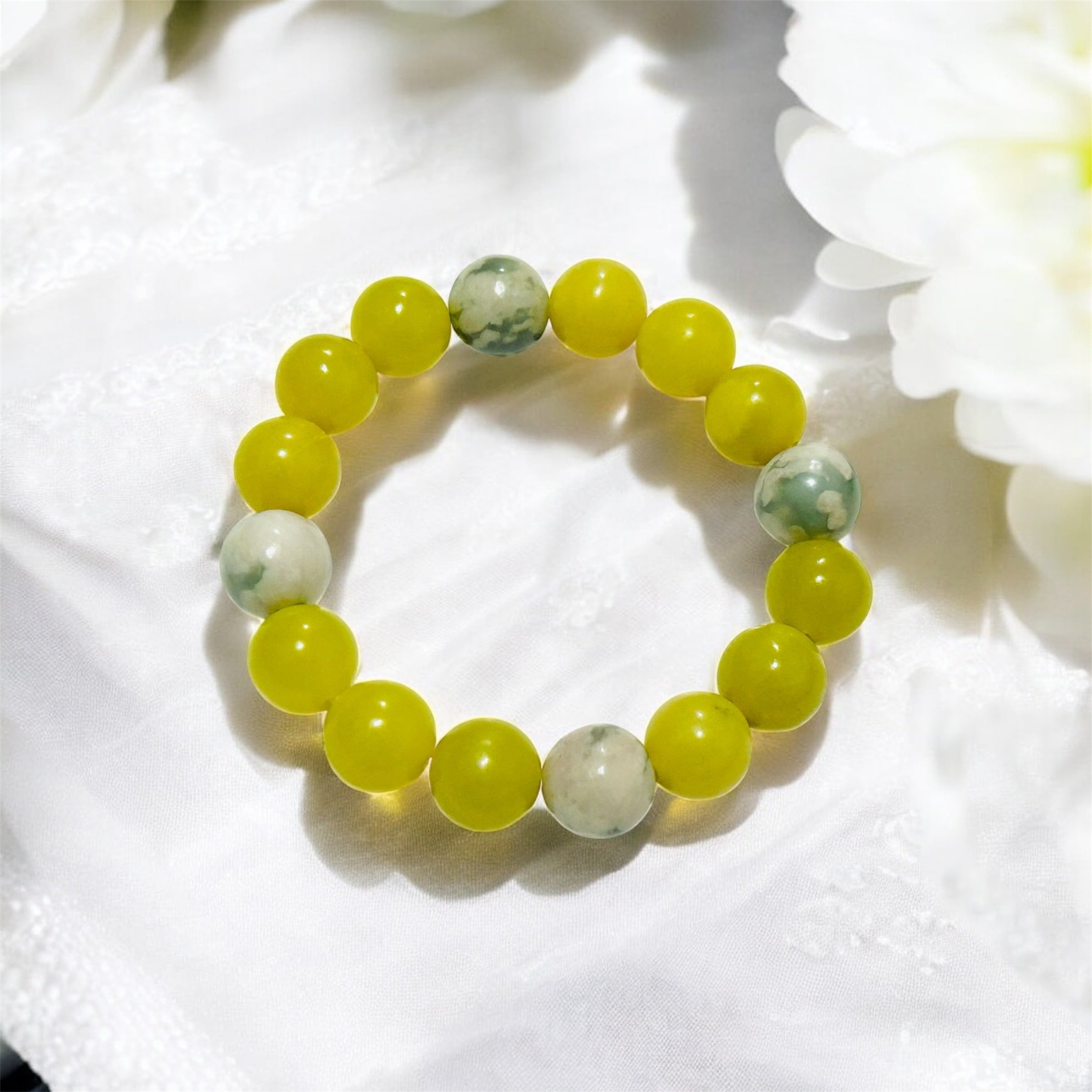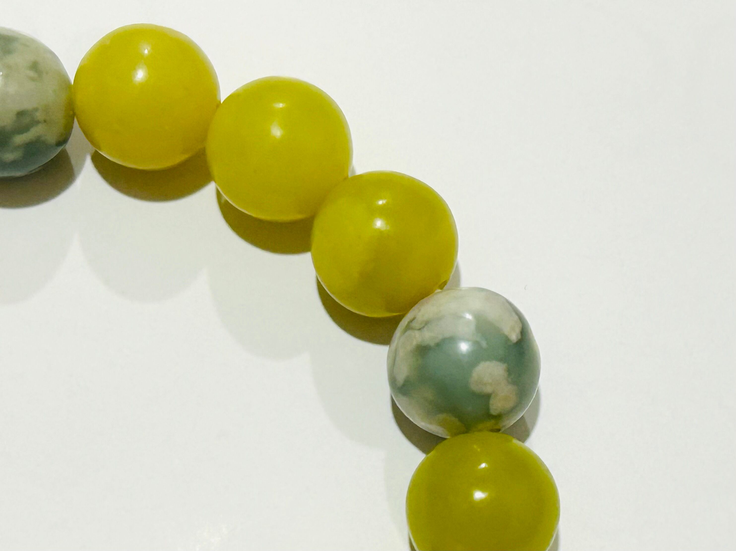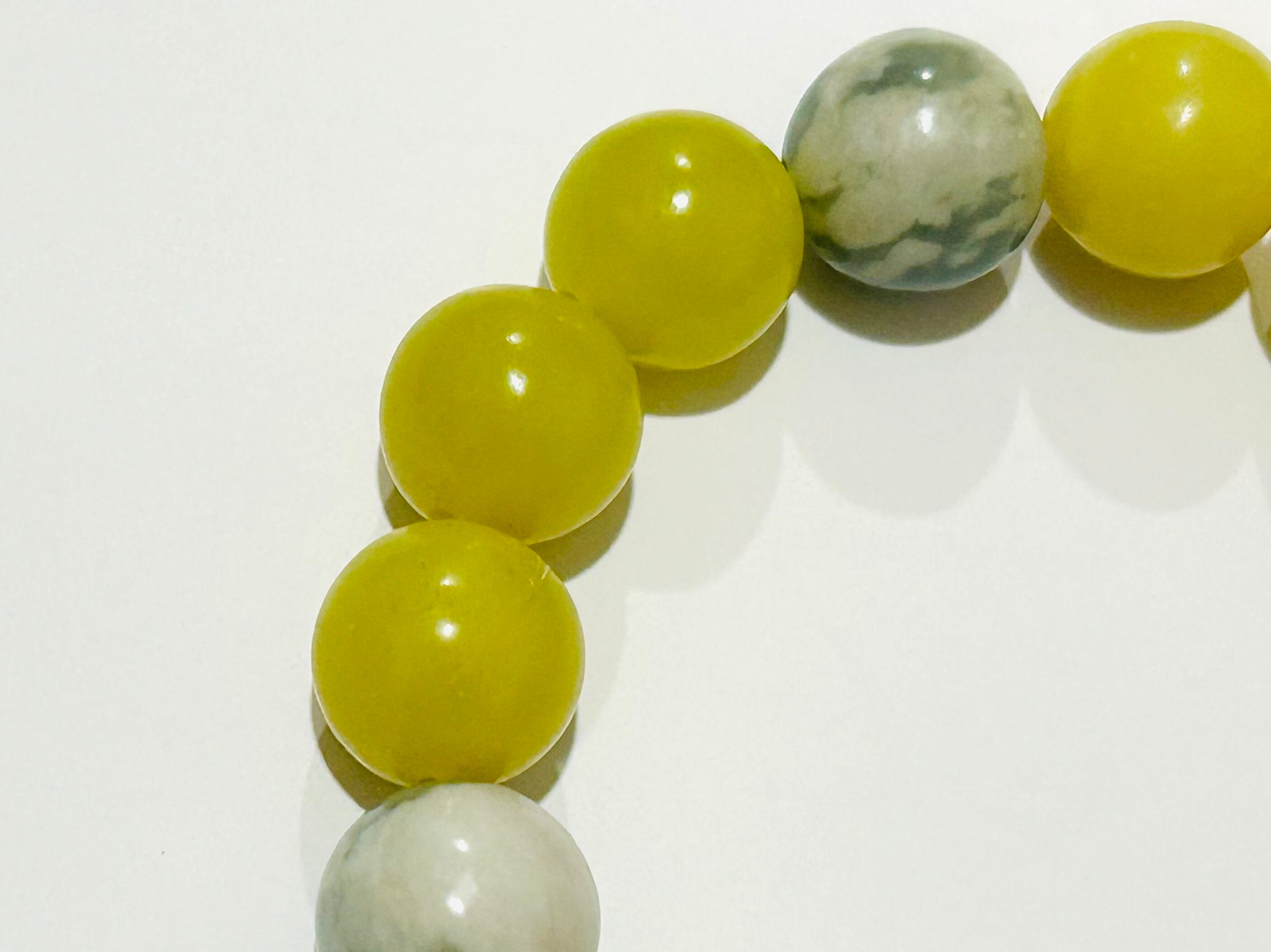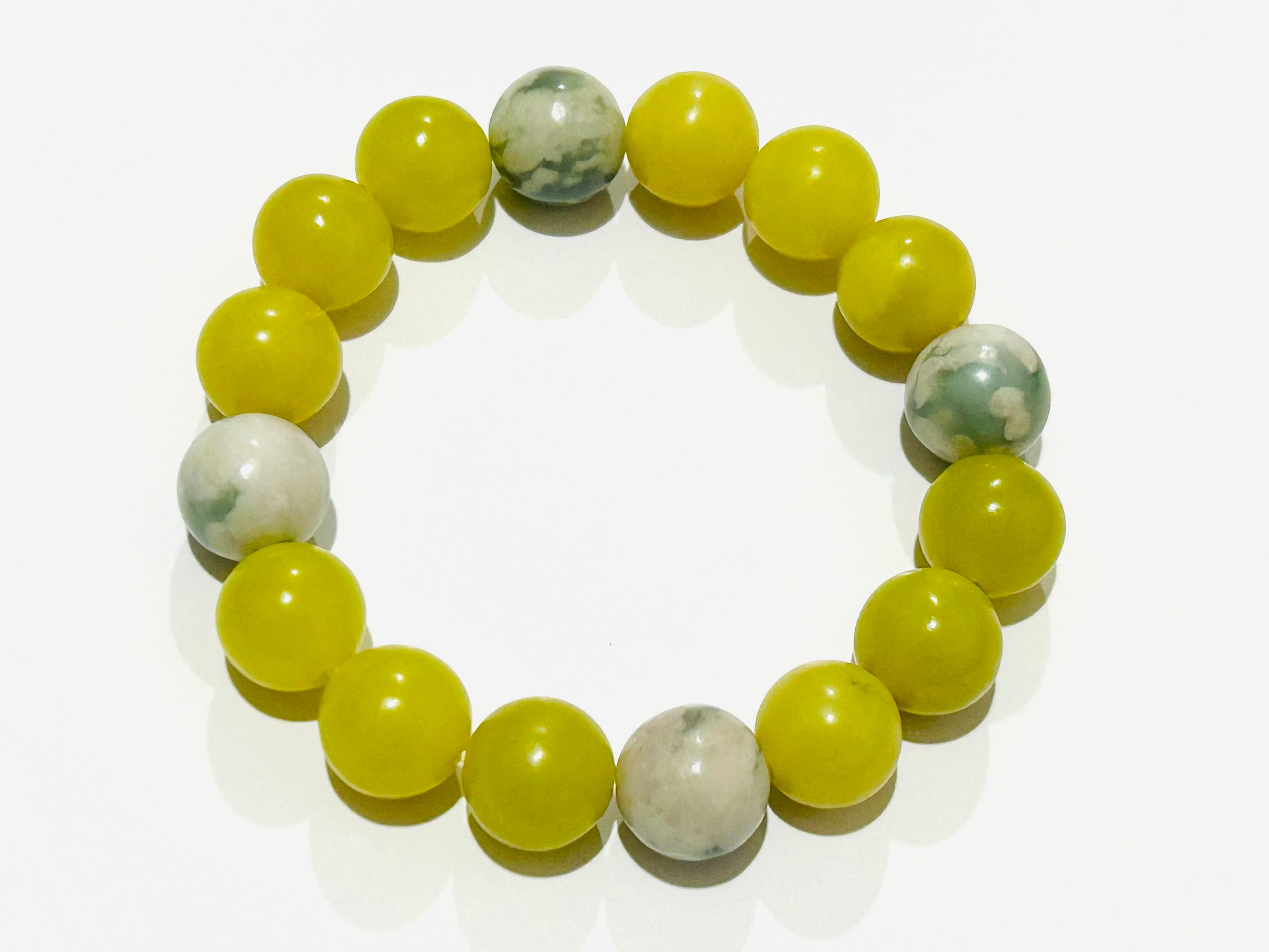 ○天然石 レモンジェードとラピスネバダ○ ブレスレット 内径15.5㎝±5㎜ 粒12mm