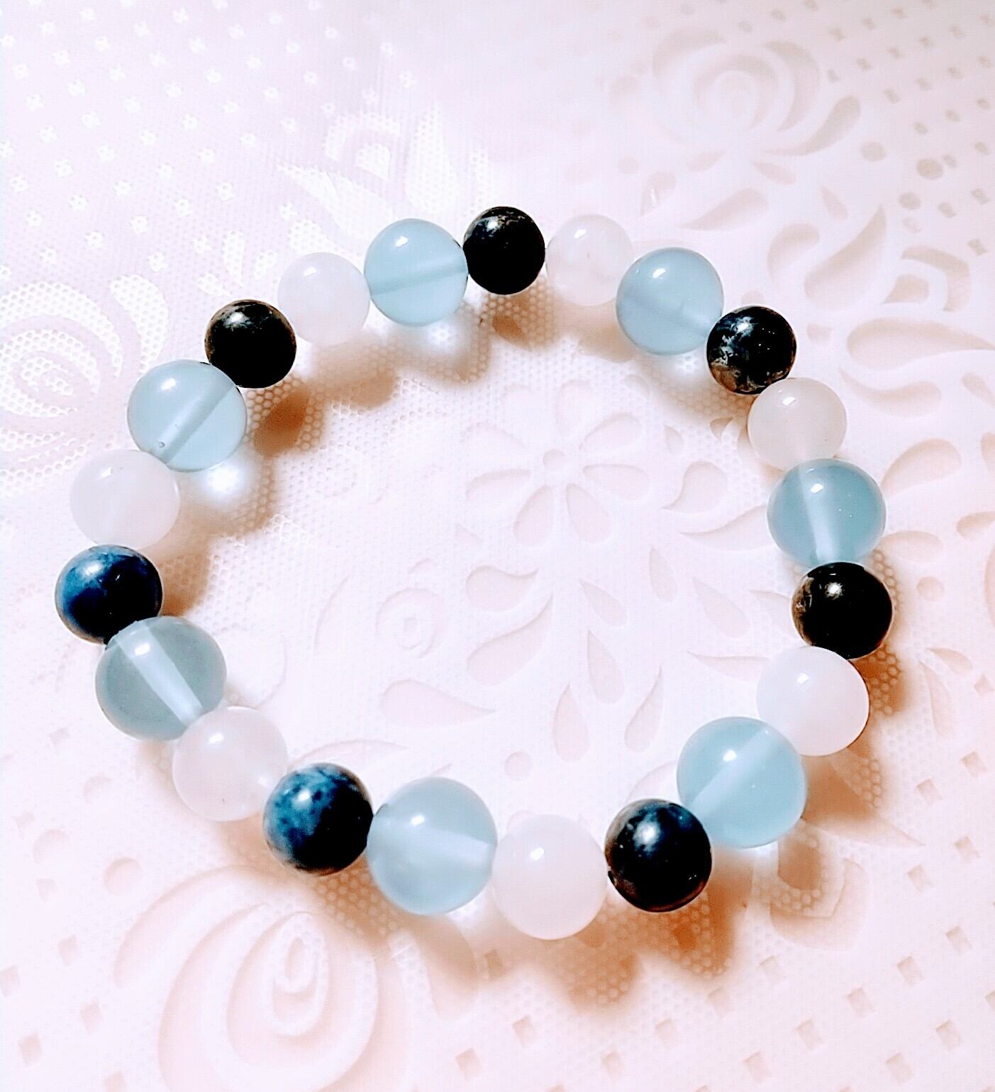 ブルージェード(8mm)・ホワイトカルサイト(6mm)・ソーダライト(4mm)