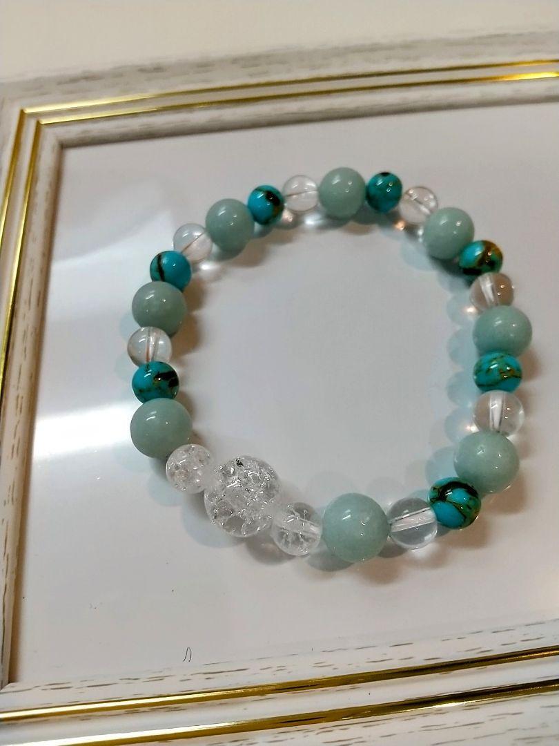 クラック水晶10mm・アマゾナイト8mm・水晶6mm・シェルインターコイズ6mm