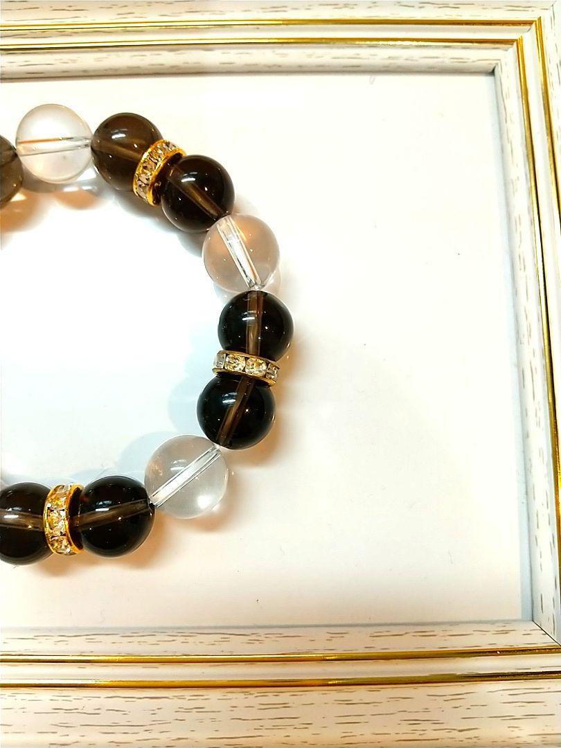 ○天然石ブレスレット○スモーキークォーツと水晶 内径15cm 珠12mm