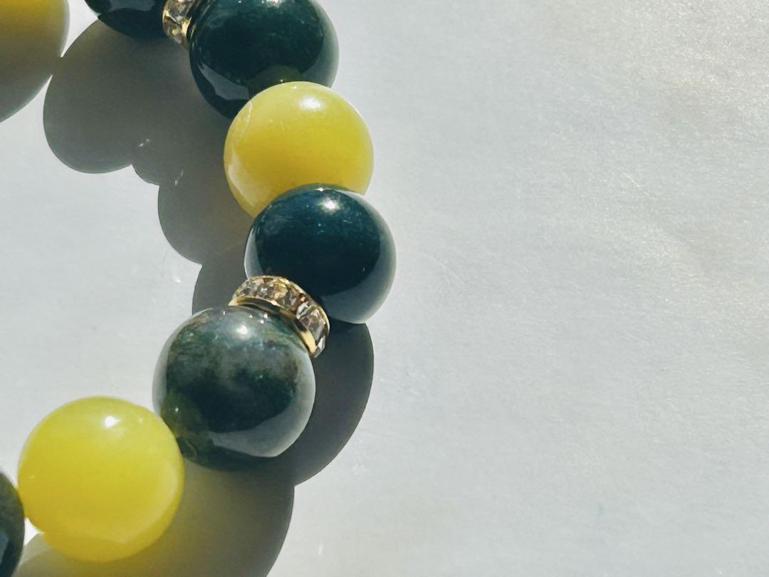 ○レモンジェードとモスグリーンアゲート○天然石ブレスレット 内径16.0㎝±5㎜