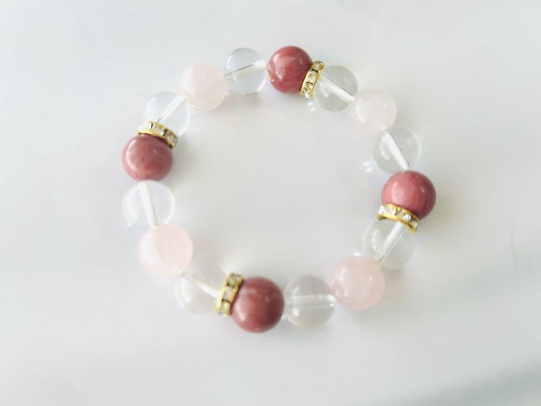 〇恋愛運アップ天然石ブレス!〇ローズクォーツ♪シリシャスシスト♪水晶のブレスレット♪